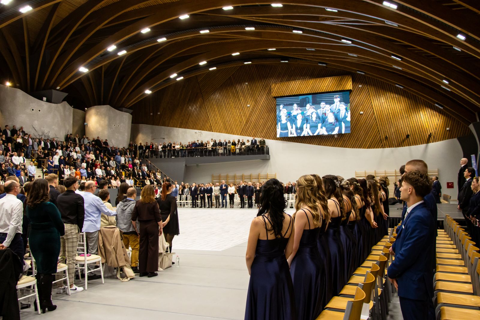Konferenciaközpont az utolsó tanévükben járó diákokkal, szeretteikkel, és az őket tanító