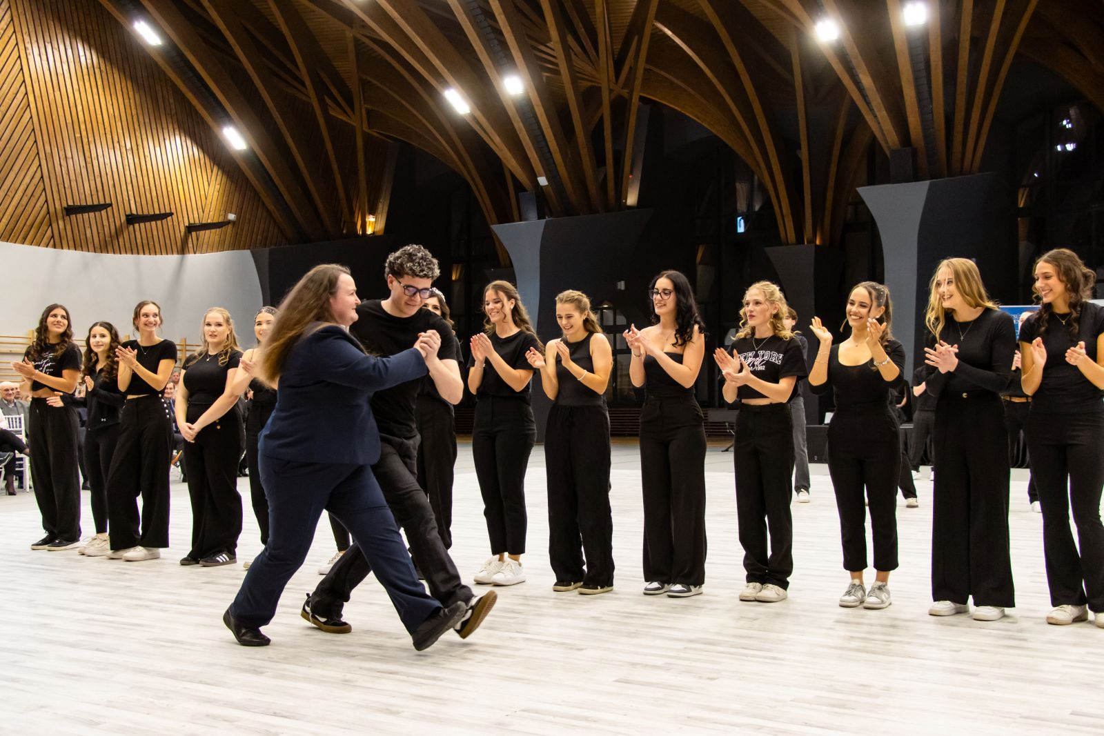 Óriási taps fogadta a záró táncot, melyben az iskola és az akadémia dolgozóit képviselő